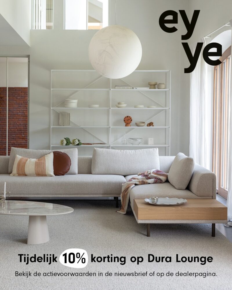 Om de samenwerking tussen EYYE en De Ploeg te vieren, bieden we 10% korting aan op de Dura Bank in combinatie met De Ploeg stoffen.
