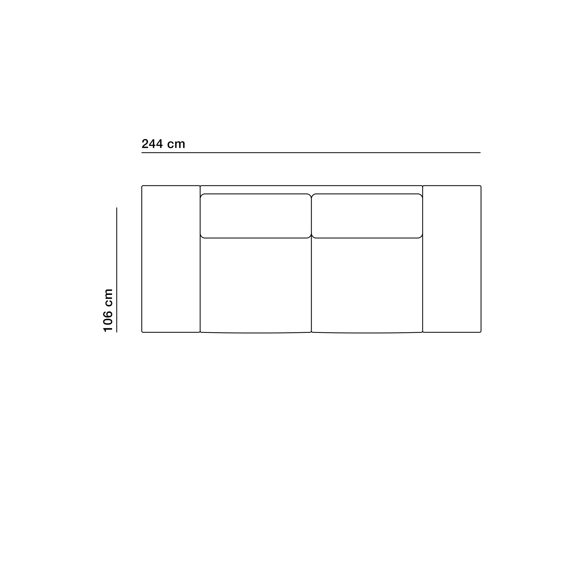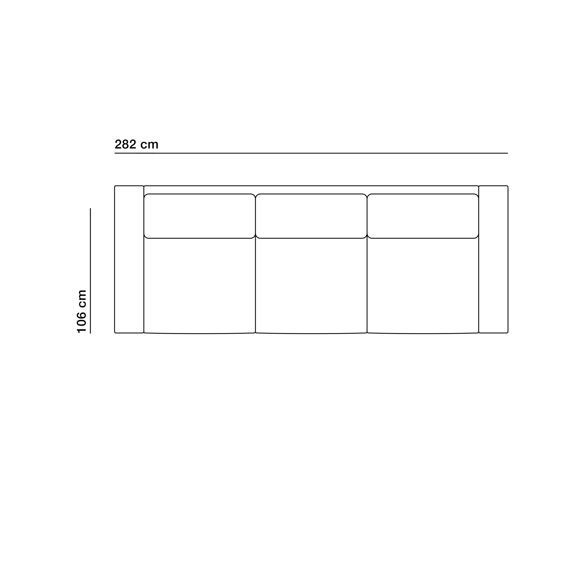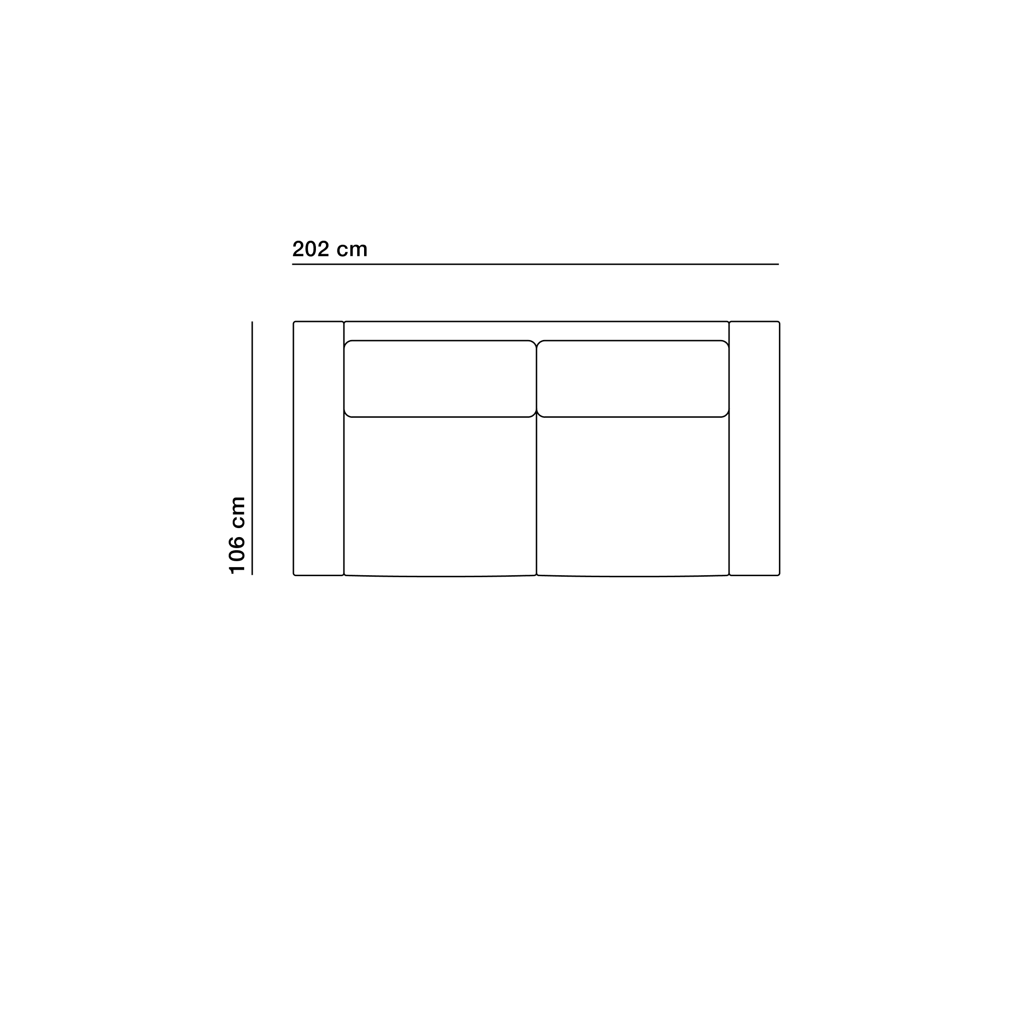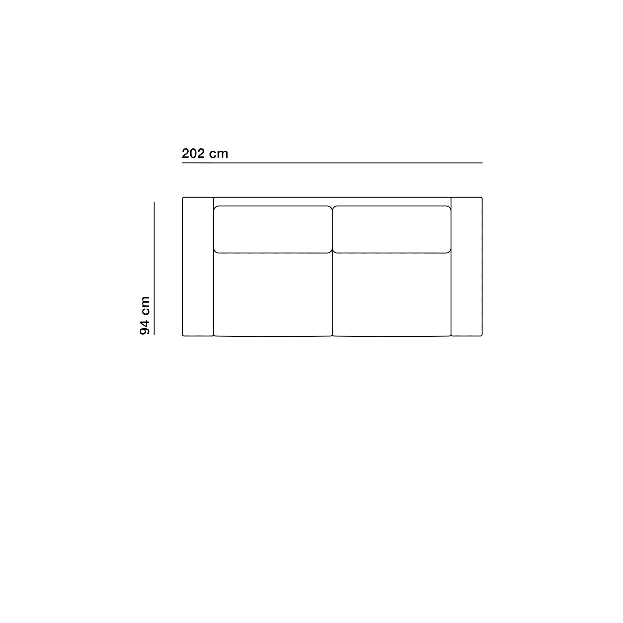 Totale breedte product: 202 cm (2,5-zits bank smalle arm, standaard zitdiepte), 282cm (4-zits bank smalle arm, standaard zitdiepte), kijk voor de afmetingen van andere varianten naar de uitvoeringen hieronder