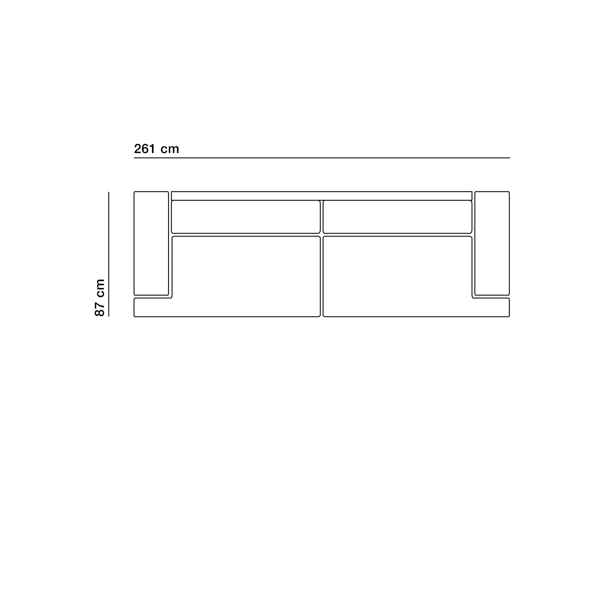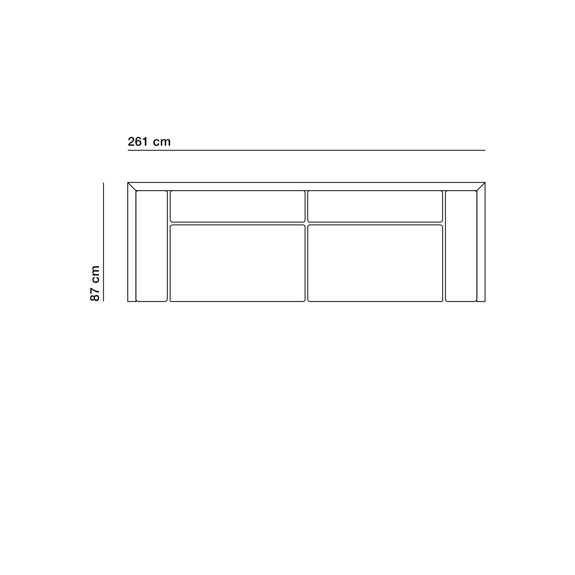 Totale breedte product: 201 cm (7880 / 7881 2,5-zits bank) 231 cm (7880 / 7781 3-zits bank) 261 cm (7780 / 7781 4-zits bank)